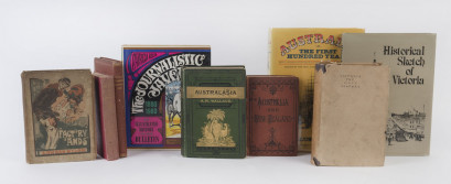 [1876]; “AUSTRALASIA” by A.R.Wallace [1883]; “Official Record of the Proceedings of the Australasian Federation Conference, 1890”; “Fact’ry ‘ands” by Edward & Will Dyson [1918]; “Maori Witchery” by C.R. Browne [1929]; plus 4 other volumes. Mixed condition. (9) -