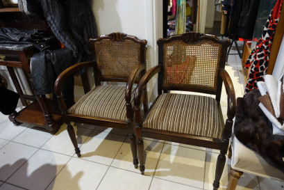 Lot Description:Early 20th century pair of oak stained scroll arm carvers