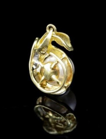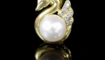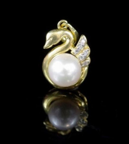 of Swan form design, marked 18k 750. Approx length 18mm, pearl size 6.5mm, weight 2 grams -
