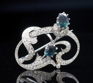 Lot Description:Sapphire and diamond set 18ct white gold brooch