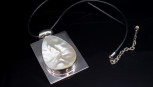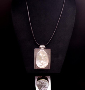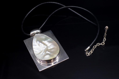 Lot Description:Blister pearl and sterling silver pendant on a leather thong and chain link necklace