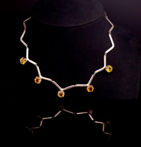 marked 925 GG. Approx 5x citrines 7.5mm dia. each, length 39cm -