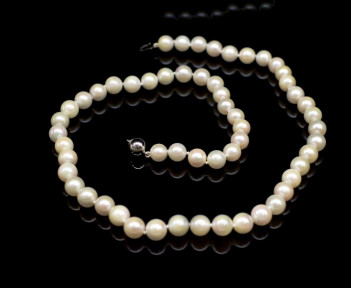 with a marked 375 white gold ball clasp. Approx 7-7.5mm pearl size length 44cm. With Valuation -