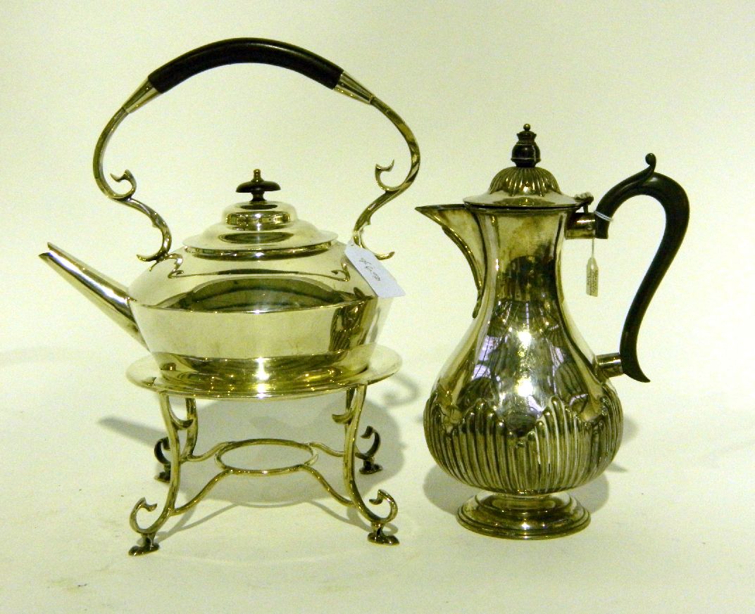 C1880 silver plate kettle on stand, together with a silver plate coffee pot (2) -