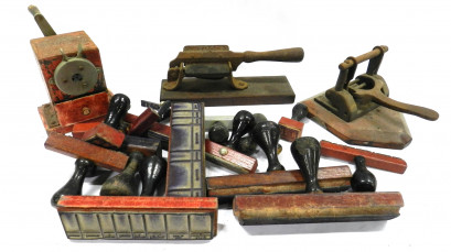Lot #8111 - A Vintage Sharpener, Hole Punch & Collection of Rubber Stamps