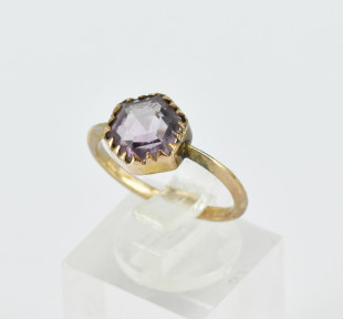 hexagonal cut amethyst in 14ct rose gold mount. Size L. Weight 2.6g -