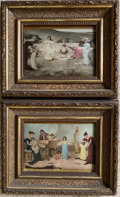 Lot Description:A Pair of 19th Century Gilt Frames with Convex Glass Hand Tinted Reproduction Prints