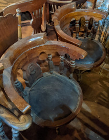 Lot #170 - A Pair of 19th Century Captains Chairs, Leather Upholstered on Iron Bases