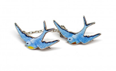 Lot Description:Silver and enamel Blue bird chained double brooch