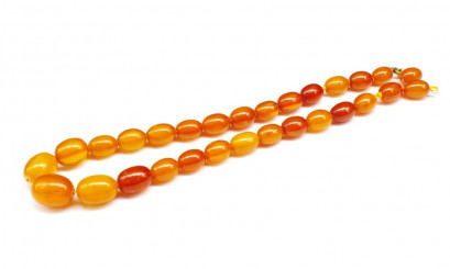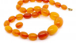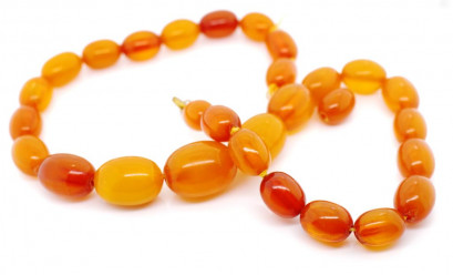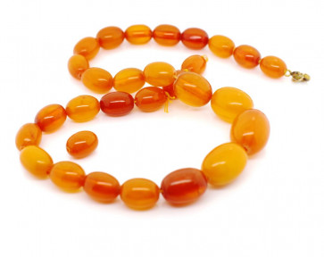 showing honey, cognac and some yolk colouration. Approx bead size 11x8mm - 18x13mm, weight 24 grams. Needs restringing 40cm -