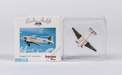 Lot Description:DOUGLAS C-47: A NOS 1:500 scale Herpa wings Douglas C-47 "Fassberg flyer"