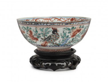 Lot Description:A Chinese porcelain bowl with Amsterdam Bont Dutch decoration of exotic birds and foliage, circa 1720