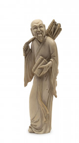 Lot Description:A Chinese carved ivory statue of a man carrying a bundle of sticks, 19th century