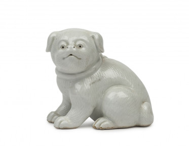 Lot Description:HIRADO ceramic puppy dog statue, Meiji period, late 19th century