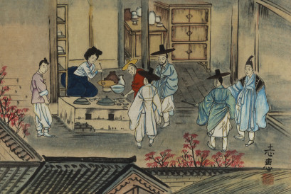Lot Description:A Japanese interior scene watercolour, Meiji period, 20th century