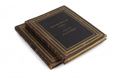 of the schools of Venice, the Venetian States, Genoa, Cremona, Mantua, Milan, Ferrara, Modena and Parma [Vol.1]; of the schools of Bologna, Florence, Naples, Romes, Sienna [Vol.11]. Compiled by direction of the Trustees of the Melbourne Public Library 1870. [Melbourne : John Ferres, 1867 - 72]. Two volumes, elephant folio (73.5cm tall), bound by Ferres in full crushed morocco over boards, elaborately tooled and lettered in gilt; silk endpapers. -