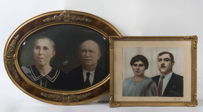 Lot Description:Two vintage framed photographs, one in oval gilt frame with convex, circa 1940s