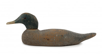 Lot Description:An antique decoy duck, carved timber with remains of original hand-painted finish plus glass eyes, 19th century