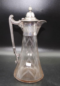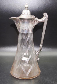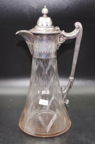 Lot Description:Victorian silver plate & cut crystal claret jug