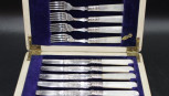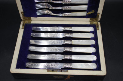 Lot Description:Cased MOP and silver plate fish set