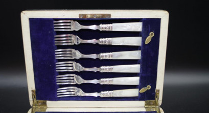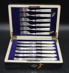 comprising 6 knives and 6 forks, maker: E.M.Dickinson -