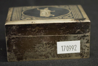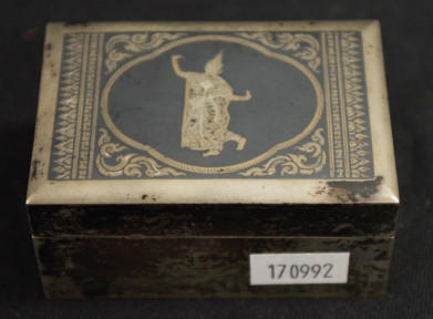 lid decorated with niello image of a Dancer, (length 7cm approx). -