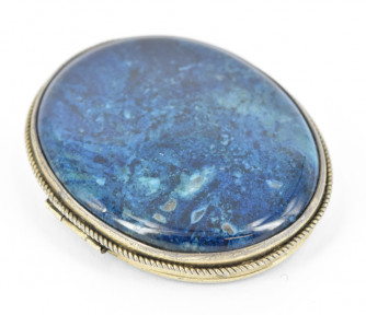 set with a cabochon cut chrysocolla, on silver with rope design out layer. Weight all in 10g -