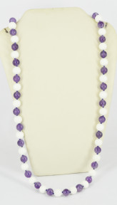 round beads amethyst beads alternating with white coral beads , silver colour bolt ring clasp. -