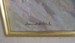 Oil board, signed lower right, measures 72.5cm H x 83cm W including gilt frame -