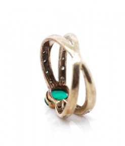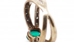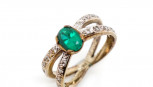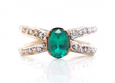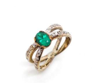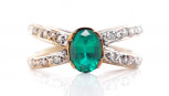 Lot Description:Created emerald and diamond set 9ct yellow gold ring