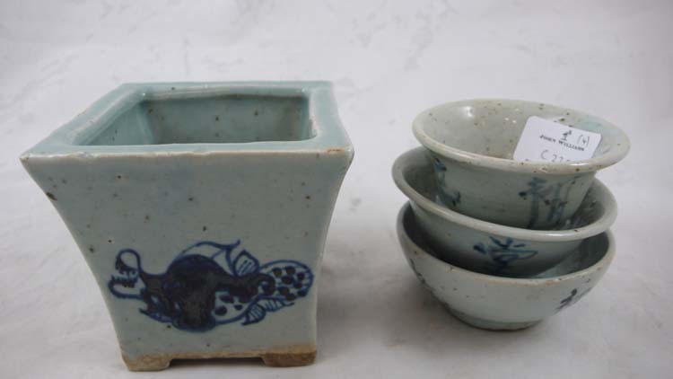 Lot #C232 - Small Chinese square vase and 3 dishes