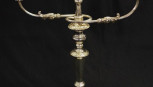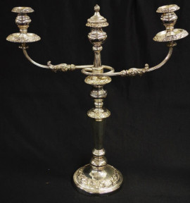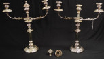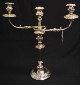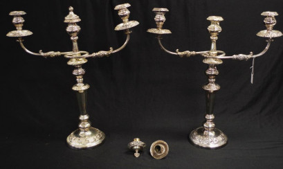 each with 3 candle sconces, embossed decoration, (height 55cm approx, each). -