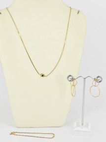 a bracelet, a necklace and a pair of earrings. -