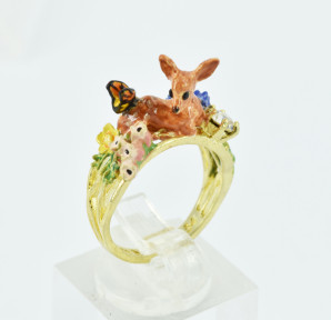 depicting fawn, enamel on gold plated base. Size N. -