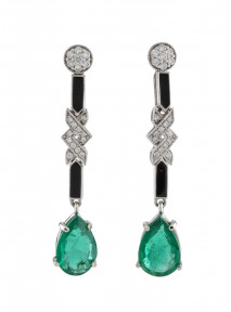 Lot Description:A Pair of Art Deco-Style Emerald, Diamond And Onyx Earrings