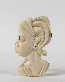 Lot Description:A carved ivory brooch of an African woman