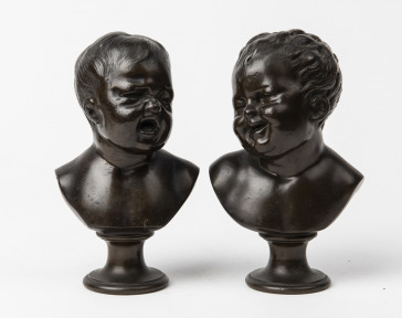 Lot Description:A pair of bronze busts 'Laughing Infant, Crying Infant'after the originals by F. Clamard, circa 1890