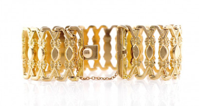 Lot Description:Vintage 18ct yellow rosey gold fret work bracelet