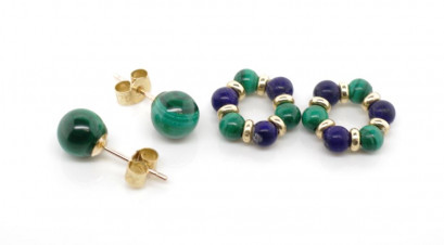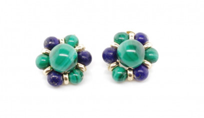 Lot Description:Malachite, lapis and 9ct yellow gold stud earrings