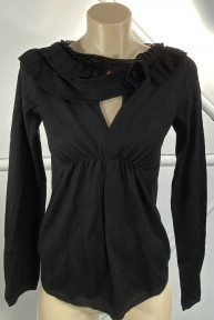 Lot Description:Prada, Milan: Black Silk Wool Blend Knit Top, Frill to Neck & Keyhole to Front & Back, Empire Line Gathering,