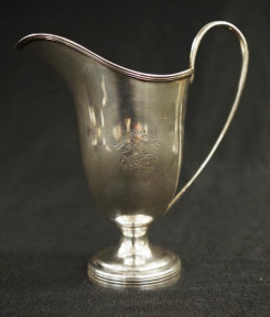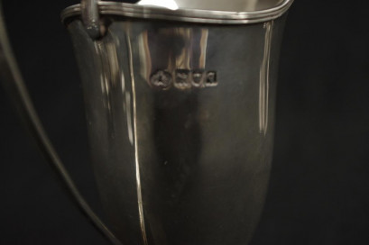helmet shape, with engraved crest (George & Dragon), hallmarked London 1911, 14cm high. 144gms -