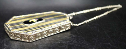 Lot #1393 - Art deco silver plate and enamel purse compact