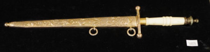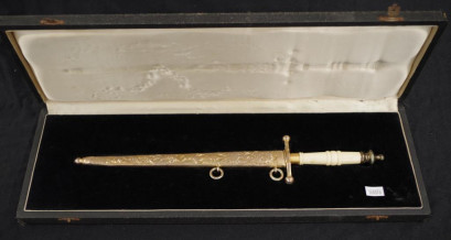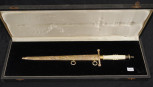 marked 'Afentakis,' (Greece), with decorative gilt decorated sheath, in fitted box, (length 33cm approx, dagger). -