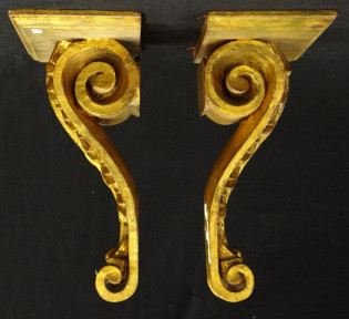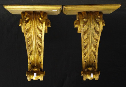 Lot Description:Pair of gilt timber scroll & leaf wall brackets