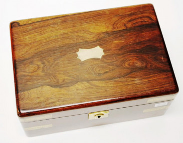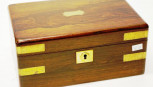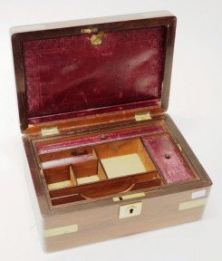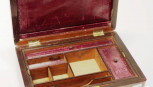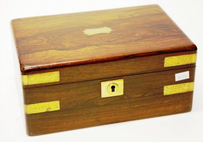 brass bound and well fitted, with lift out tray and compartments, c1830. (Length 24cm; height 10cm approx). -