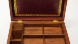 fitted interior and tray, segmented interior, with tooled leather covered top compartment, c1825. (Length 30cm; height 13cm approx). -