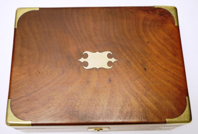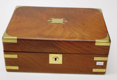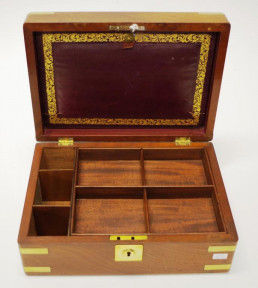 Lot Description:George III mahogany brass bound jewellery box