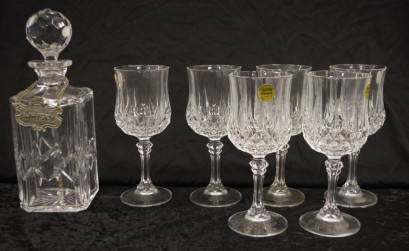 Lot Description:Heavy crystal decanter & 6 wine glasses