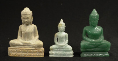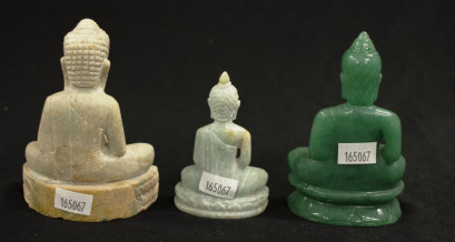Lot Description:Three various Oriental hard stone Buddha figurines