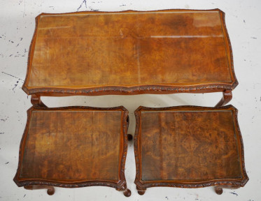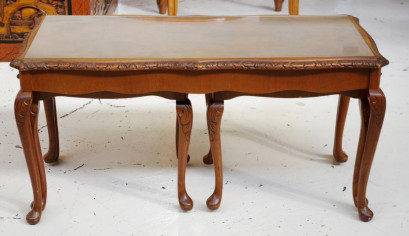 with glass tops and cabriole legs, 96cm x 47cm, 47cm high approx -